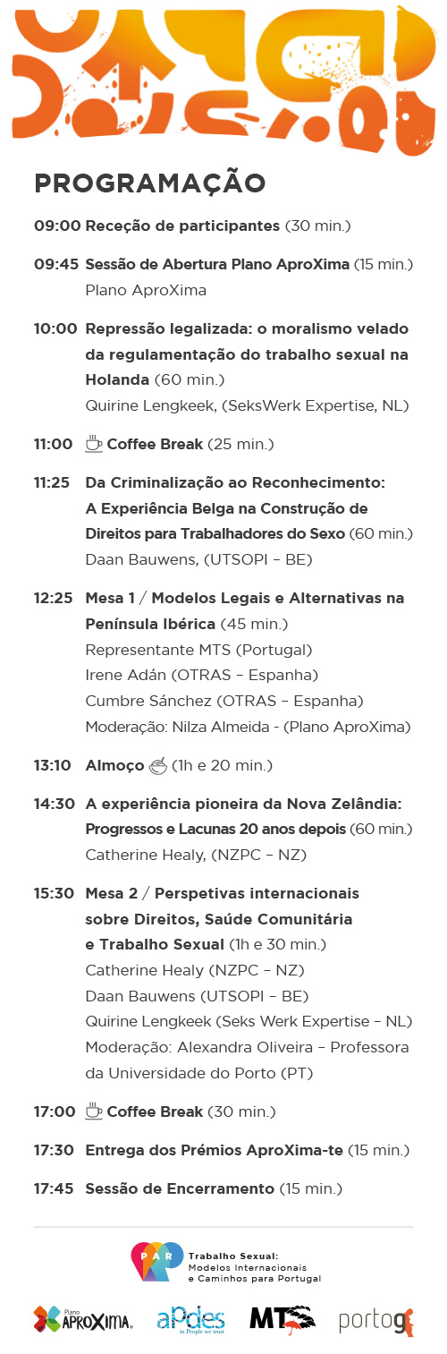 Com a partilha de informações importantes sobre a realidade vivida pelas pessoas trabalhadoras do sexo em diferentes países, com distintos modelos de regulamentação do Trabalho Sexual, esperamos enriquecer a nossa própria visão sobre como melhor integrar a população na sociedade, libertando-a de estigmas vividos.